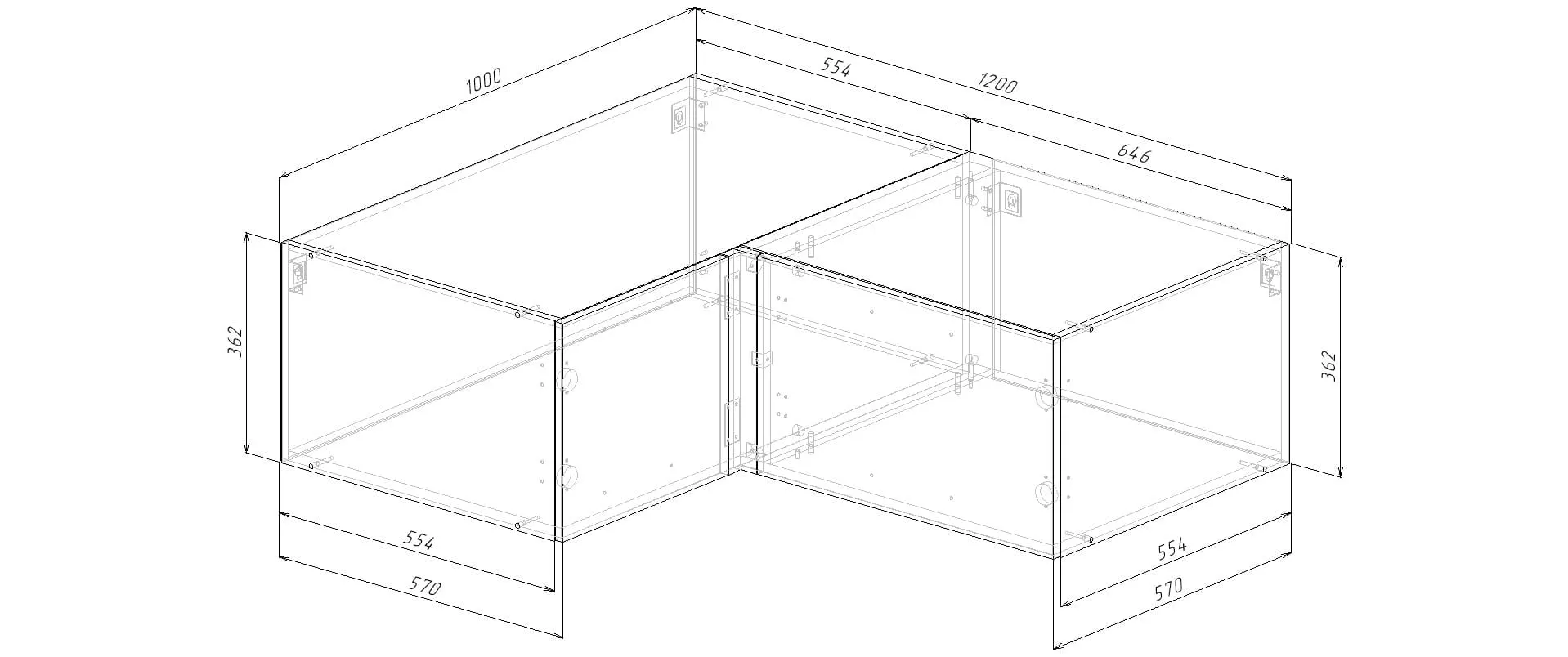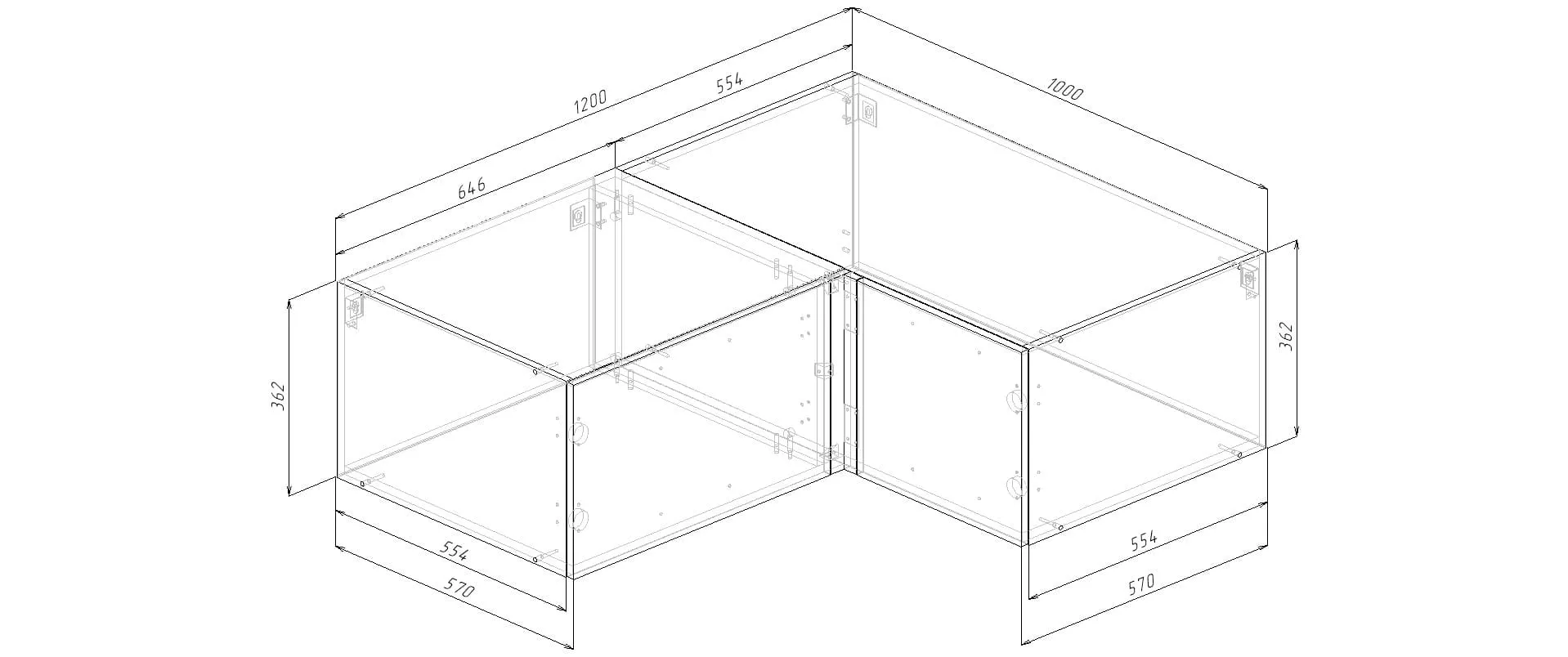 Модуль верхний Распашной глубокий Угловой 1000/1200х570х362
