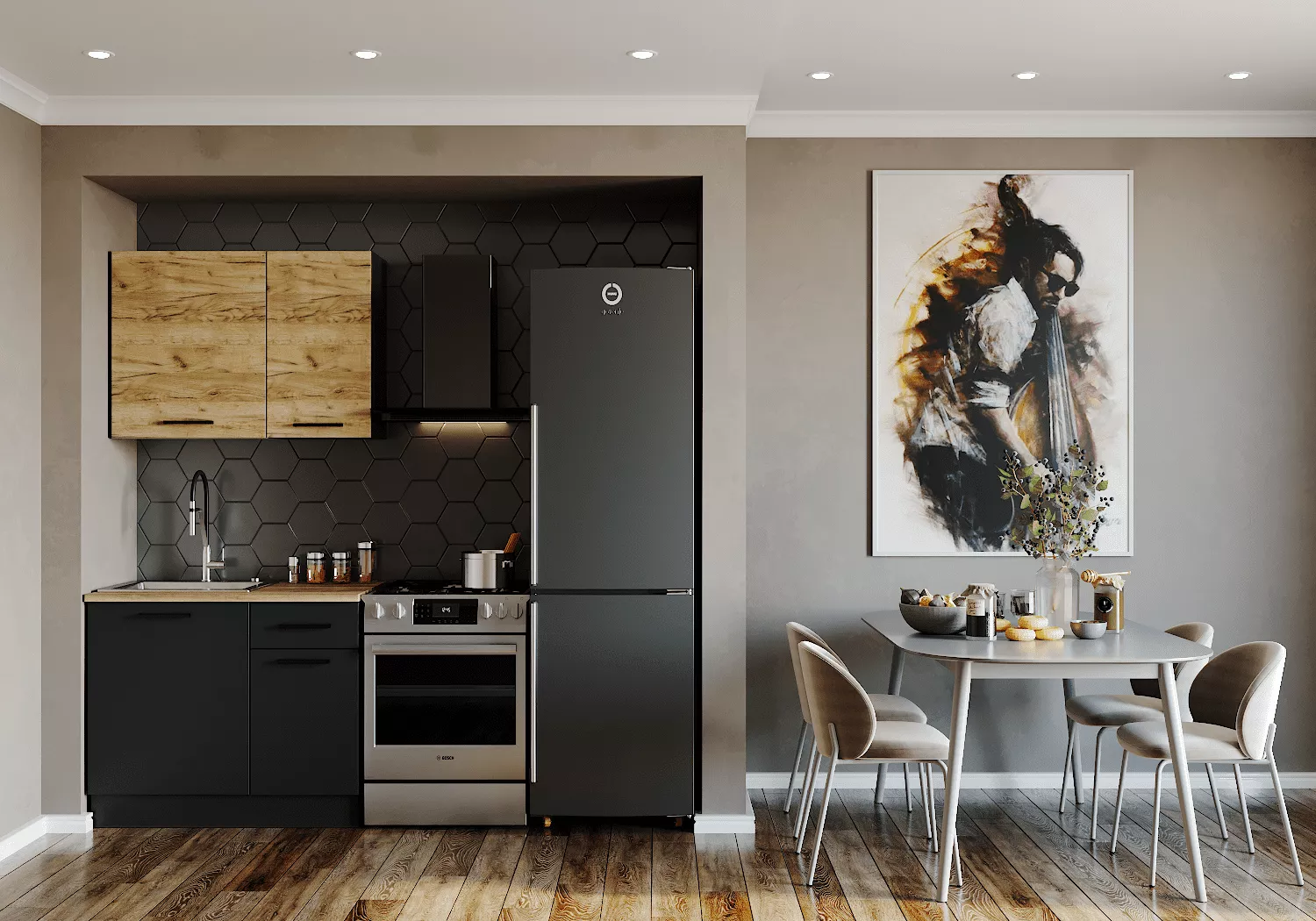 Фасады верхних модулей со свесом 12 мм дают возможность использовать без установки ручек.