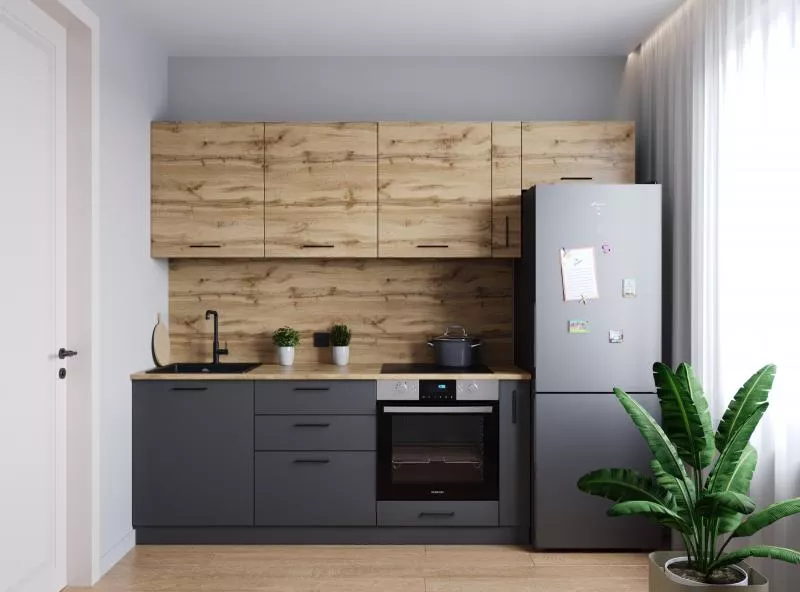 Фасады верхних модулей со свесом 12 мм дают возможность использовать без установки ручек.