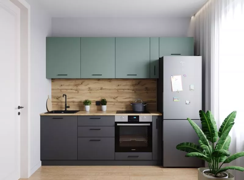 Фасады верхних модулей со свесом 12 мм дают возможность использовать без установки ручек.