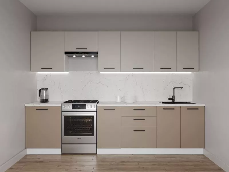 Фасады верхних модулей со свесом 12 мм дают возможность использовать без установки ручек.