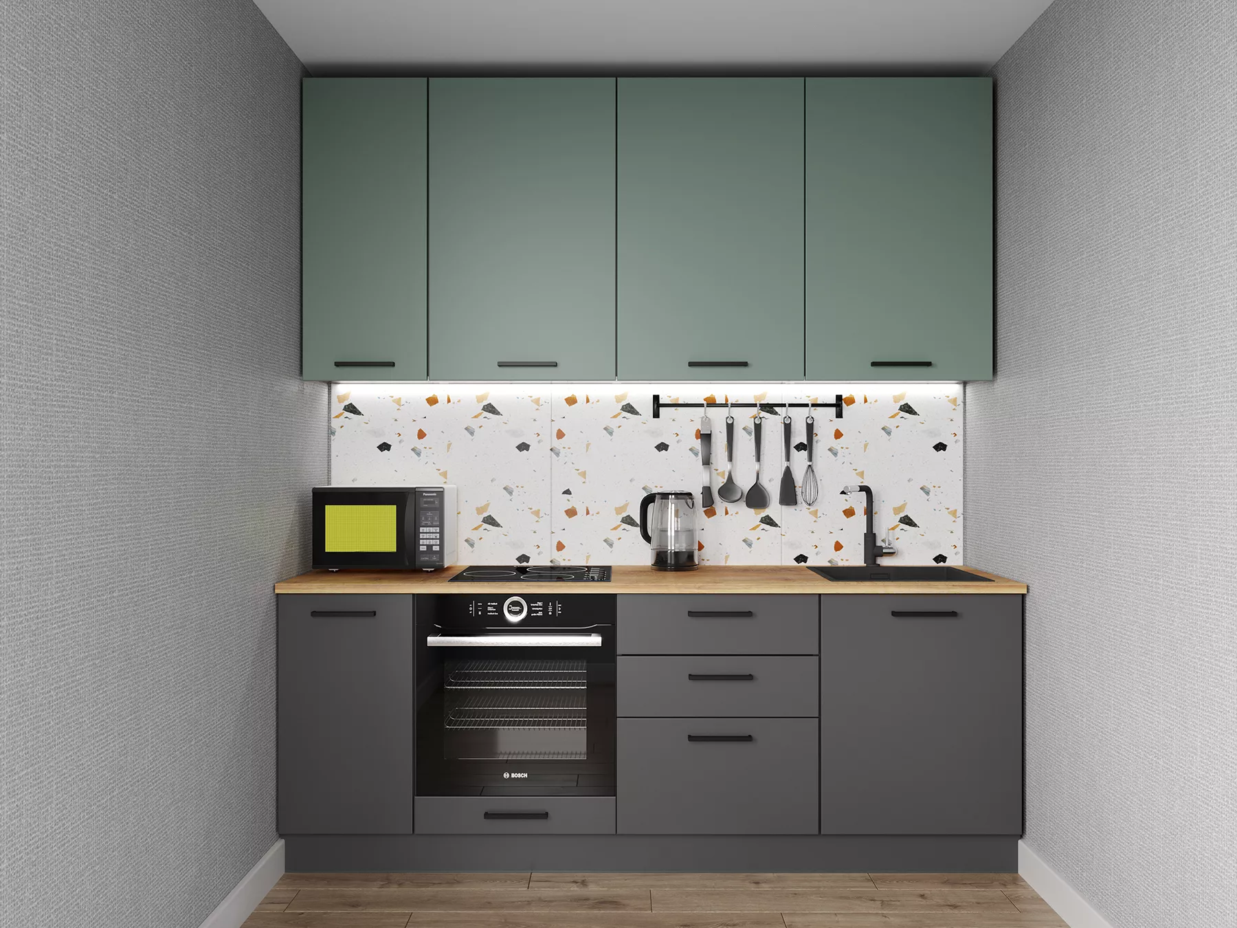 Фасады верхних модулей со свесом 12 мм дают возможность использовать без установки ручек.