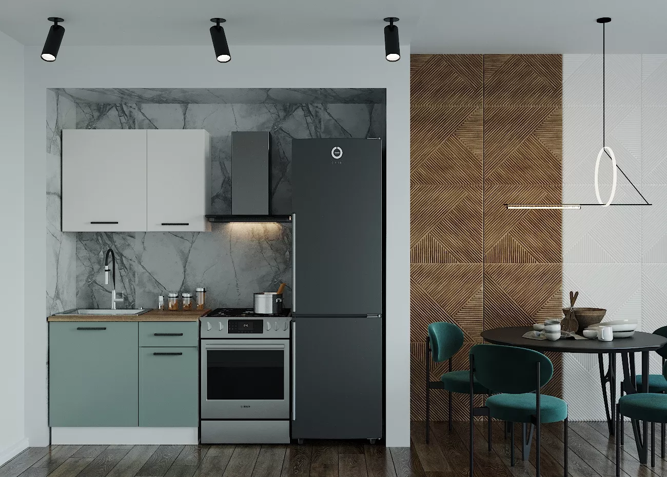 Фасады верхних модулей со свесом 12 мм дают возможность использовать без установки ручек.