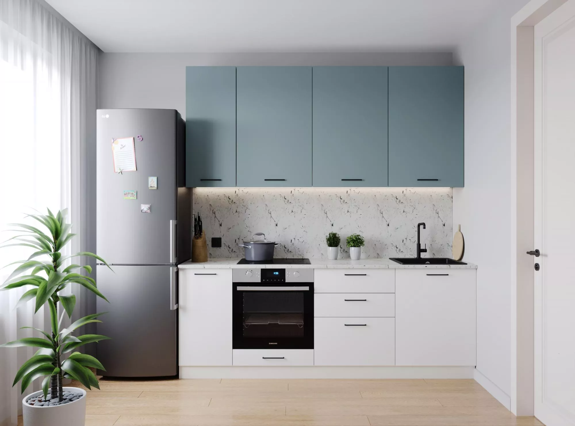 Фасады верхних модулей со свесом 12 мм дают возможность использовать без установки ручек.