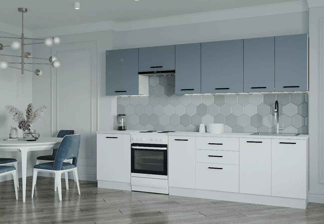 Фасады верхних модулей со свесом 12 мм дают возможность использовать без установки ручек.