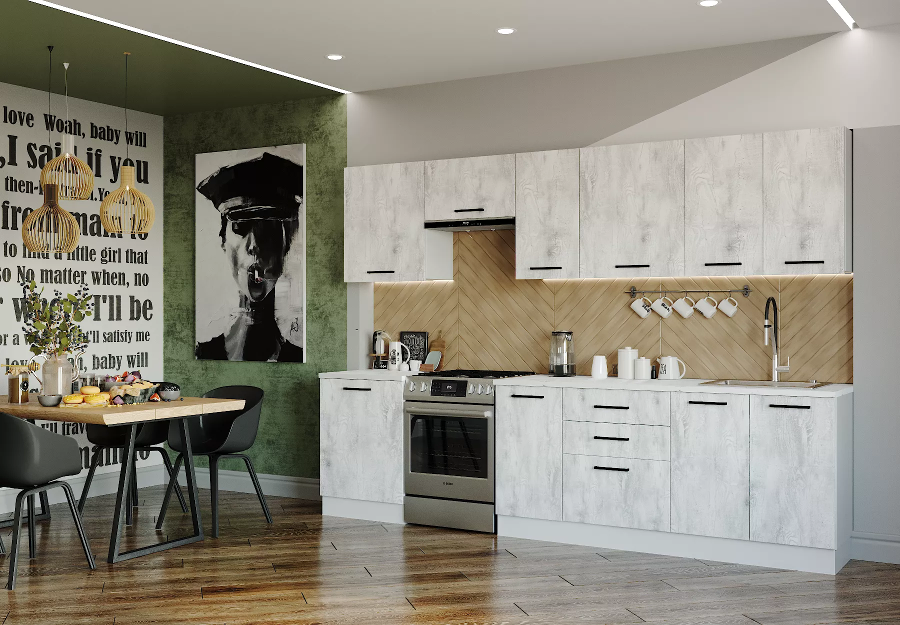 Фасады верхних модулей со свесом 12 мм дают возможность использовать без установки ручек.