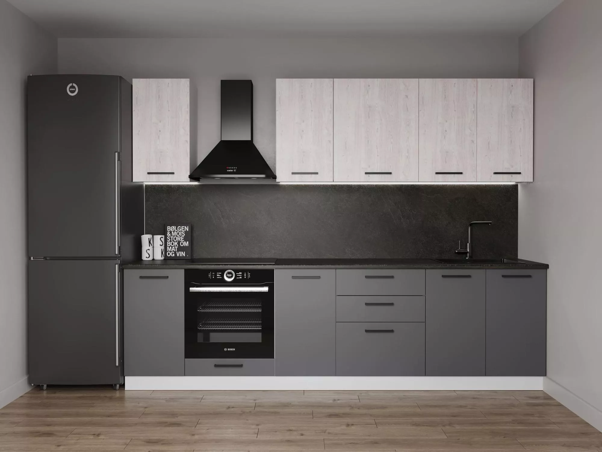 Фасады верхних модулей со свесом 12 мм дают возможность использовать без установки ручек.