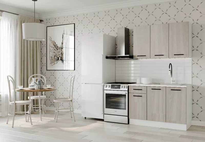Фасады верхних модулей со свесом 12 мм дают возможность использовать без установки ручек.