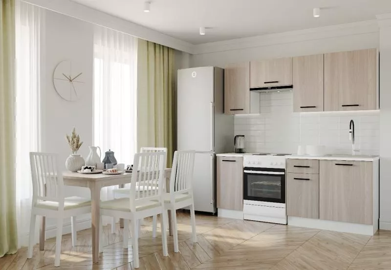 Фасады верхних модулей со свесом 12 мм дают возможность использовать без установки ручек.