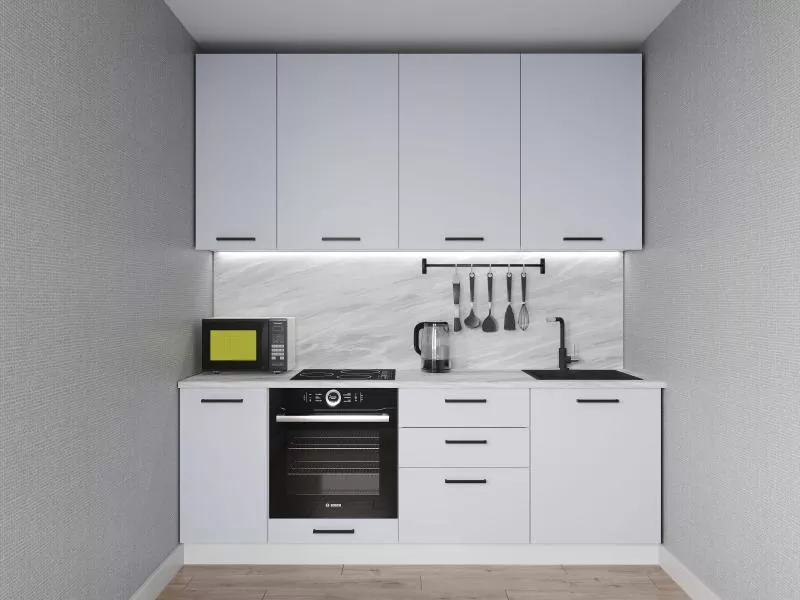 Фасады верхних модулей со свесом 12 мм дают возможность использовать без установки ручек.