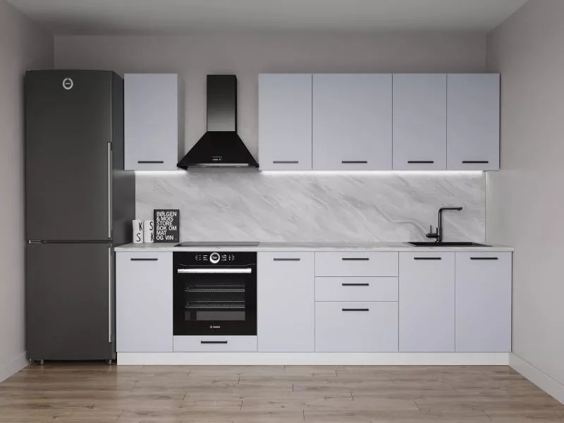 Фасады верхних модулей со свесом 12 мм дают возможность использовать без установки ручек.