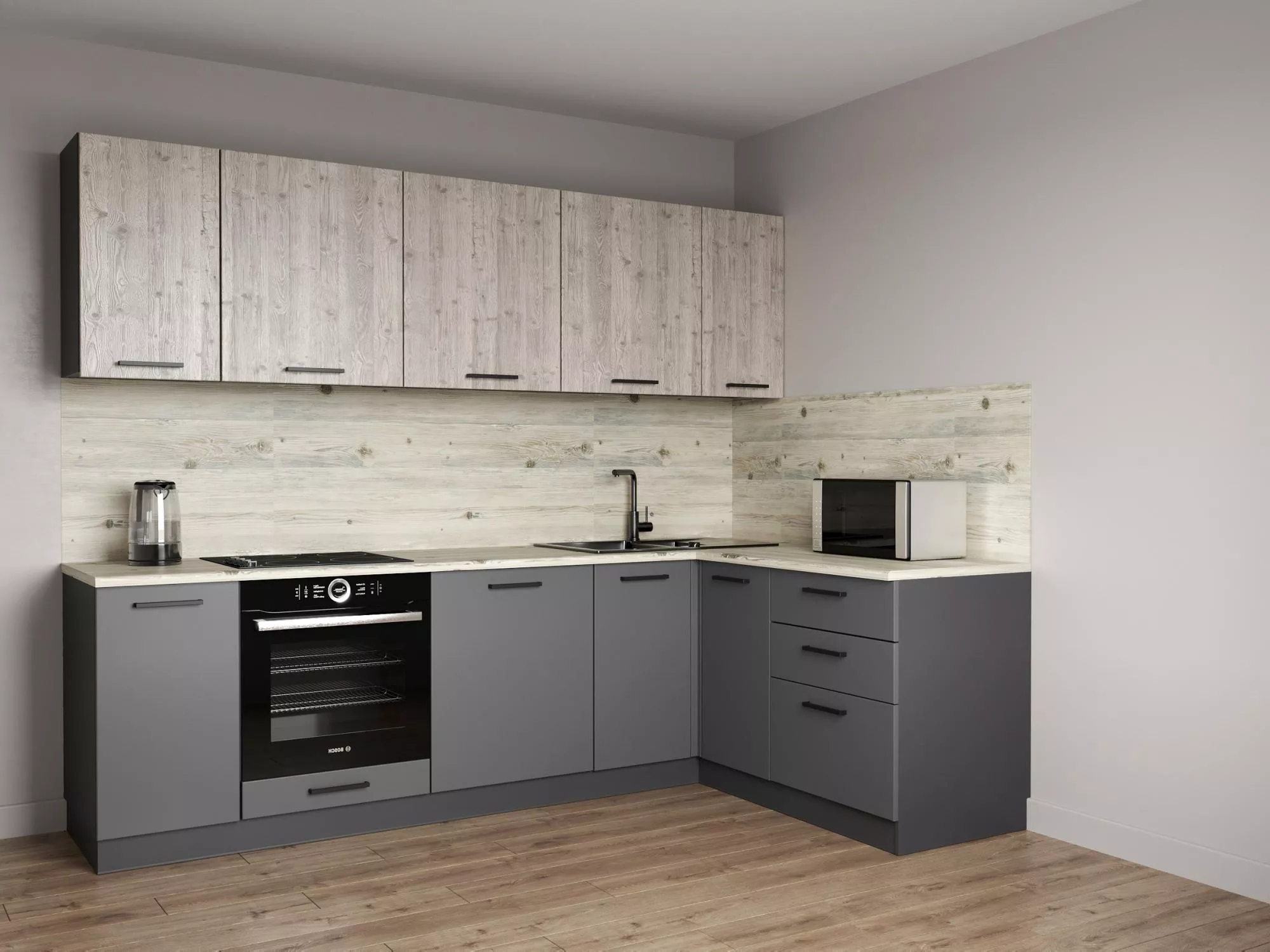 Фасады верхних модулей со свесом 12 мм дают возможность использовать без установки ручек.