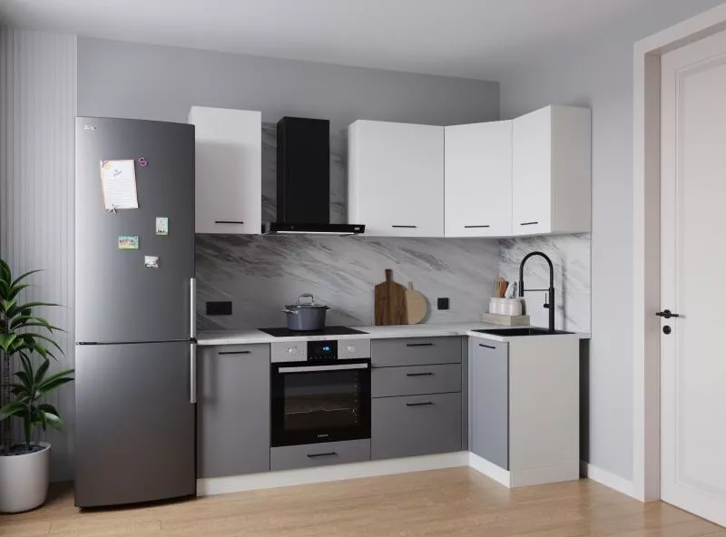 Фасады верхних модулей со свесом 12 мм дают возможность использовать без установки ручек.