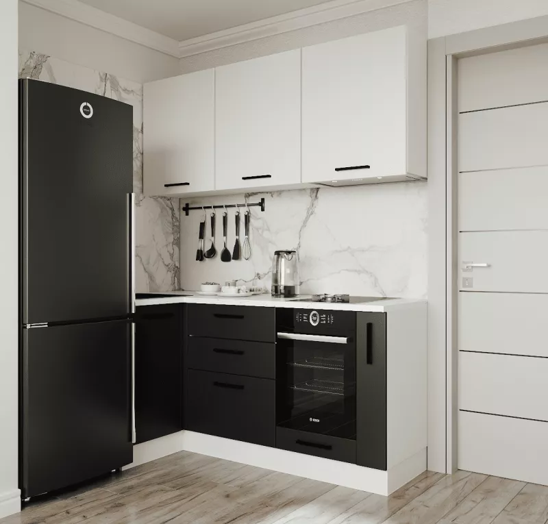 Фасады верхних модулей со свесом 12 мм дают возможность использовать без установки ручек.
