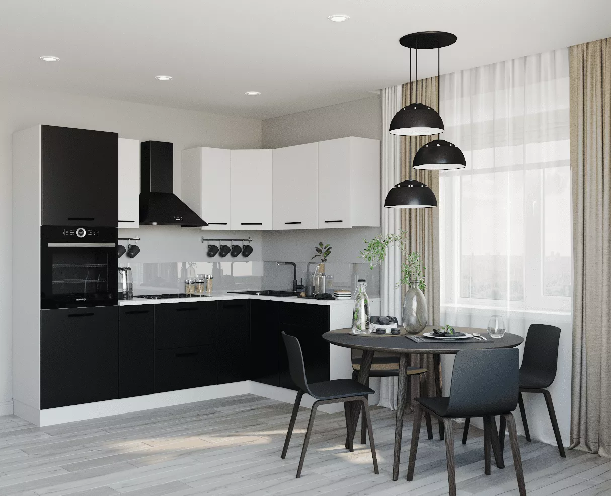 Фасады верхних модулей со свесом – дают возможность использовать модули без установки ручек, а также установить скрытую подсветку;