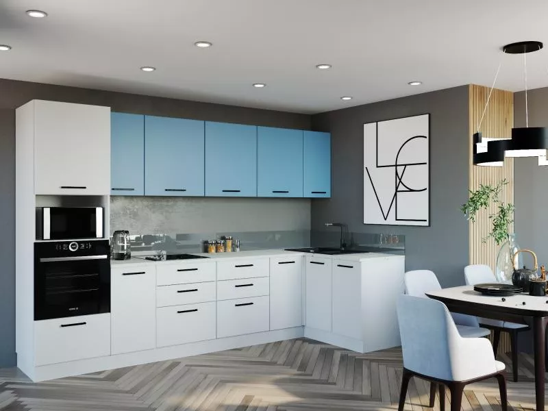 Фасады верхних модулей со свесом 12 мм дают возможность использовать без установки ручек.