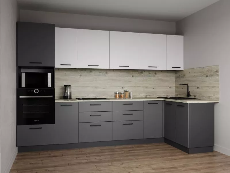 Фасады верхних модулей со свесом 12 мм дают возможность использовать без установки ручек.