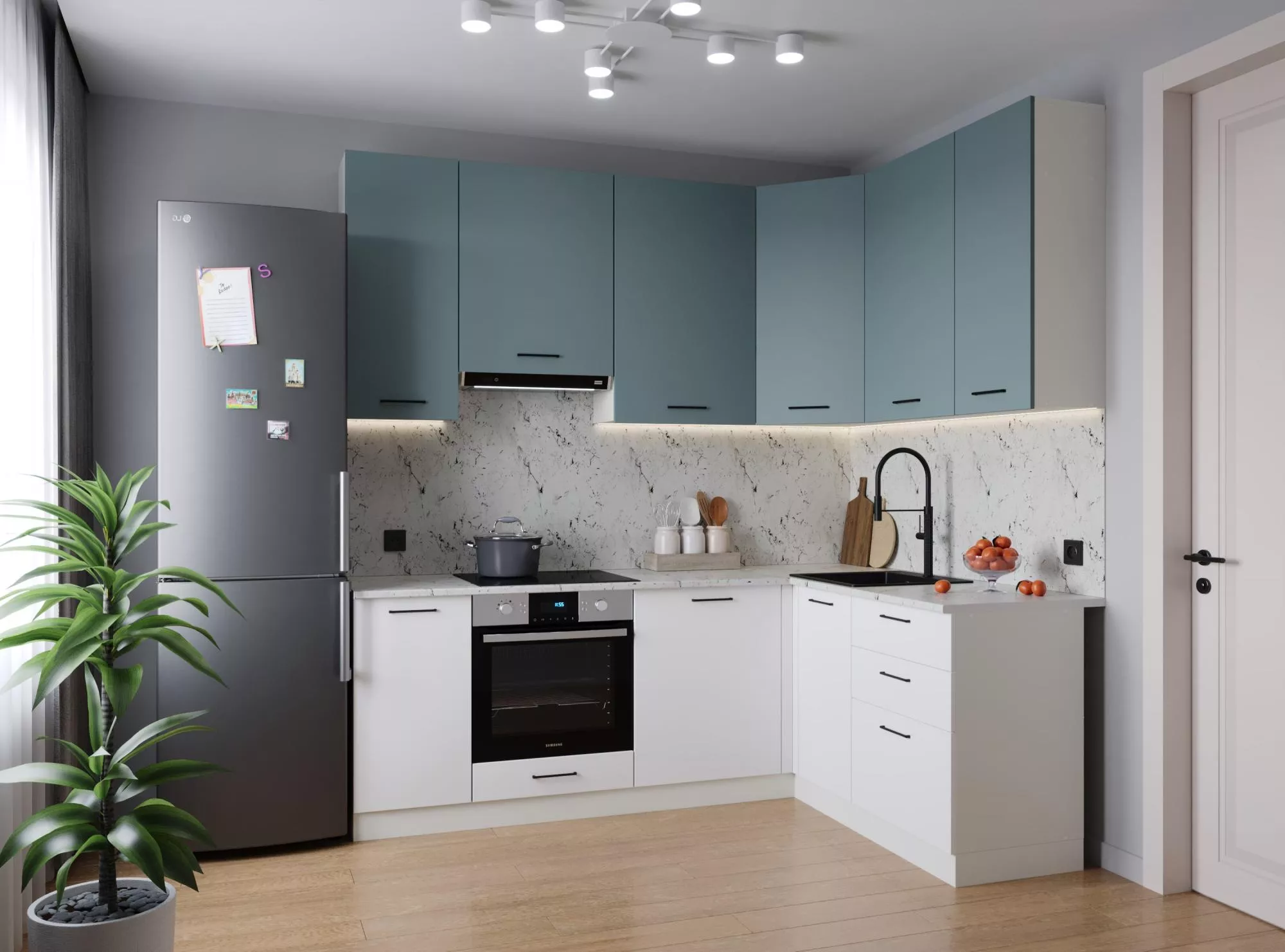 Фасады верхних модулей со свесом 12 мм дают возможность использовать без установки ручек.