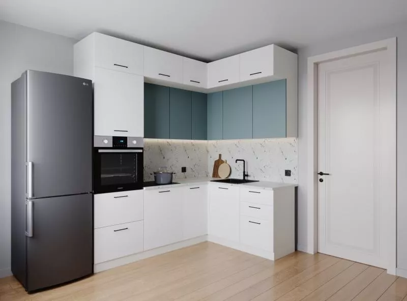 Модули первого верхнего яруса с фасадами со свесом 12 мм, что позволяет открывать их без установленных ручек.