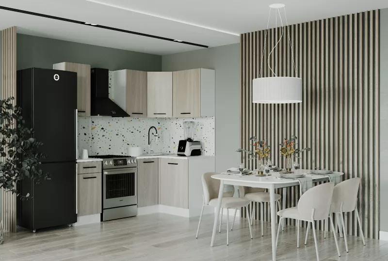 Фасады верхних модулей со свесом 12 мм дают возможность использовать без установки ручек.