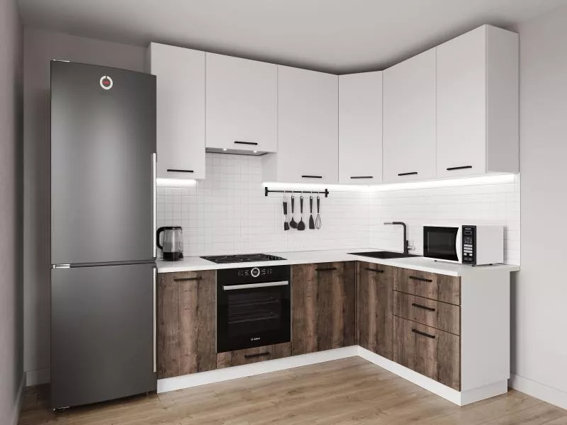 Фасады верхних модулей со свесом 12 мм дают возможность использовать без установки ручек.