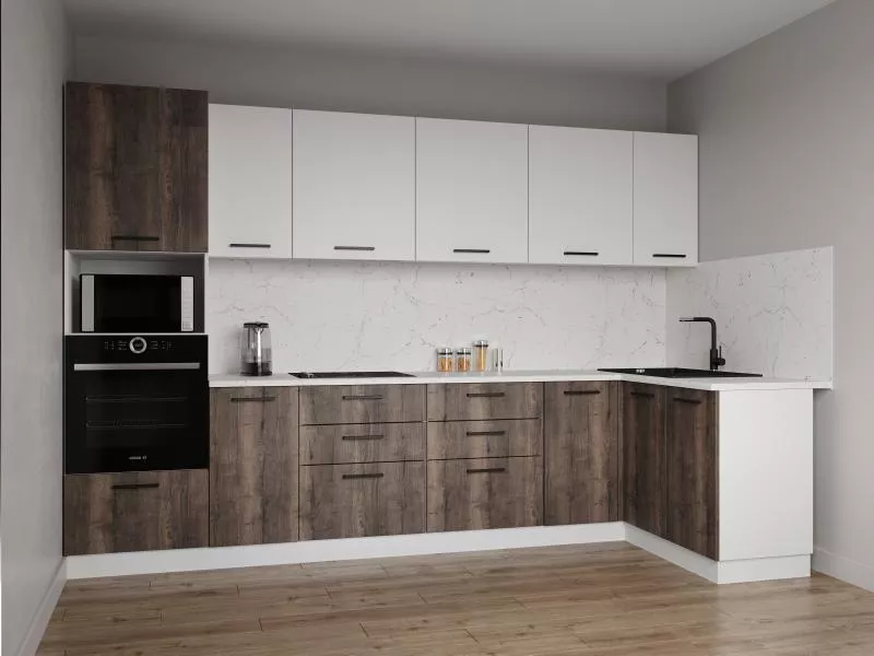 Кухонный гарнитур угловой Старое дерево 3200х1400 мм