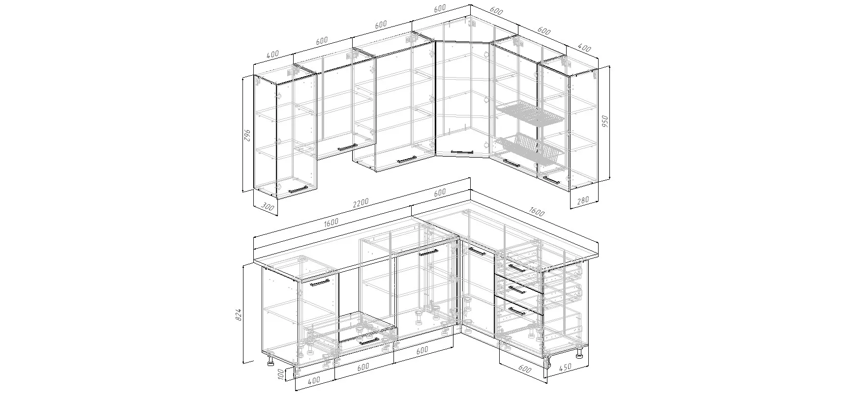 В960 Модуль верхний с посудосушителем (ШхГхВ) 600х300х950мм -1 шт
