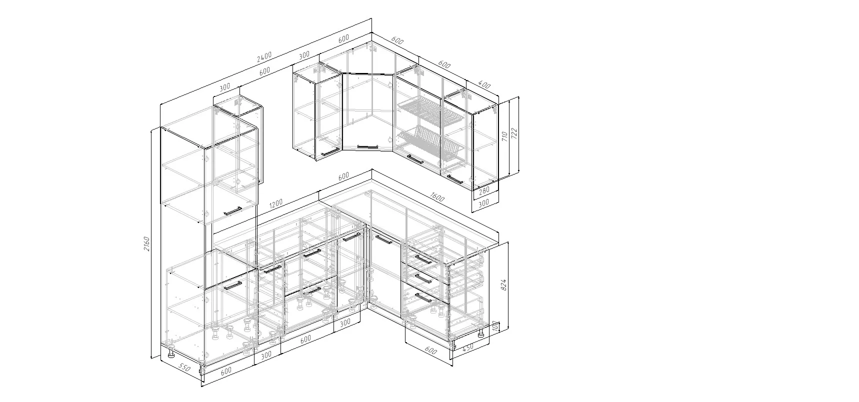 | Высота напольных шкафов | 850 |