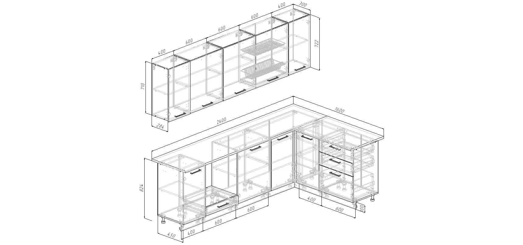 Кухонный гарнитур угловой Трансильвания 2600х1600 мм