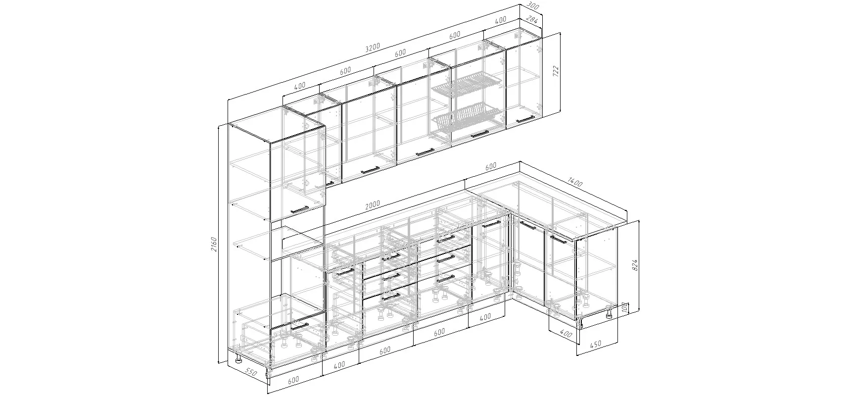 Кухонный гарнитур угловой Трансильвания 3200x1400 мм
