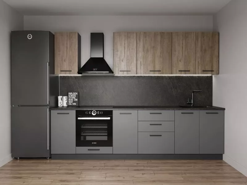 Фасады верхних модулей со свесом 12 мм дают возможность использовать без установки ручек.