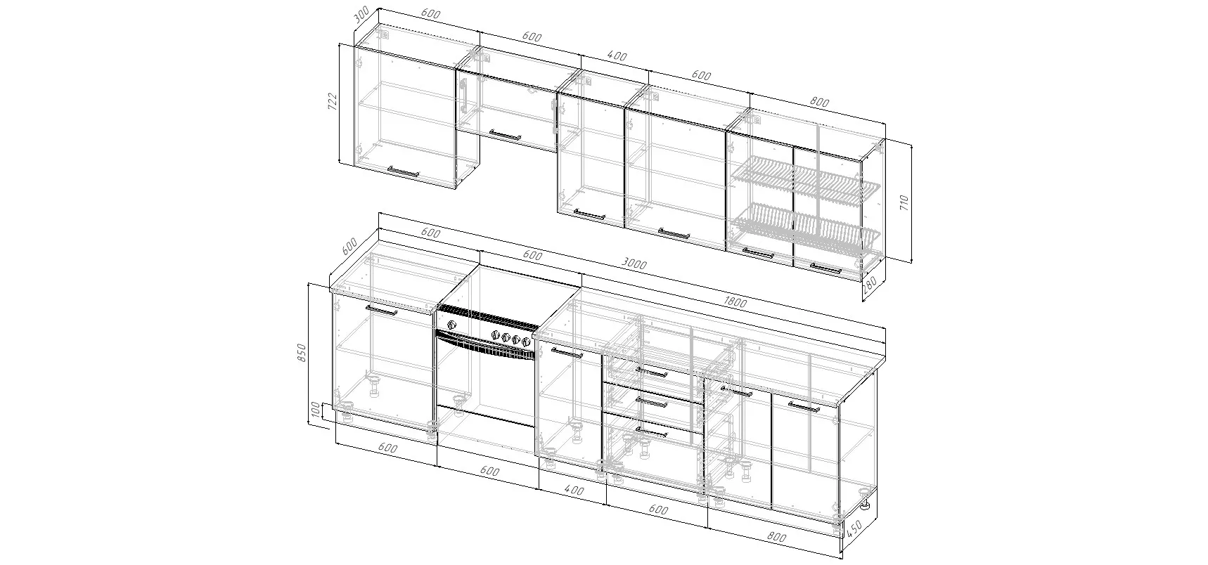 ВС780 Модуль верхний с посудосушителем (ШхГхВ) 800х300х710мм -1 шт