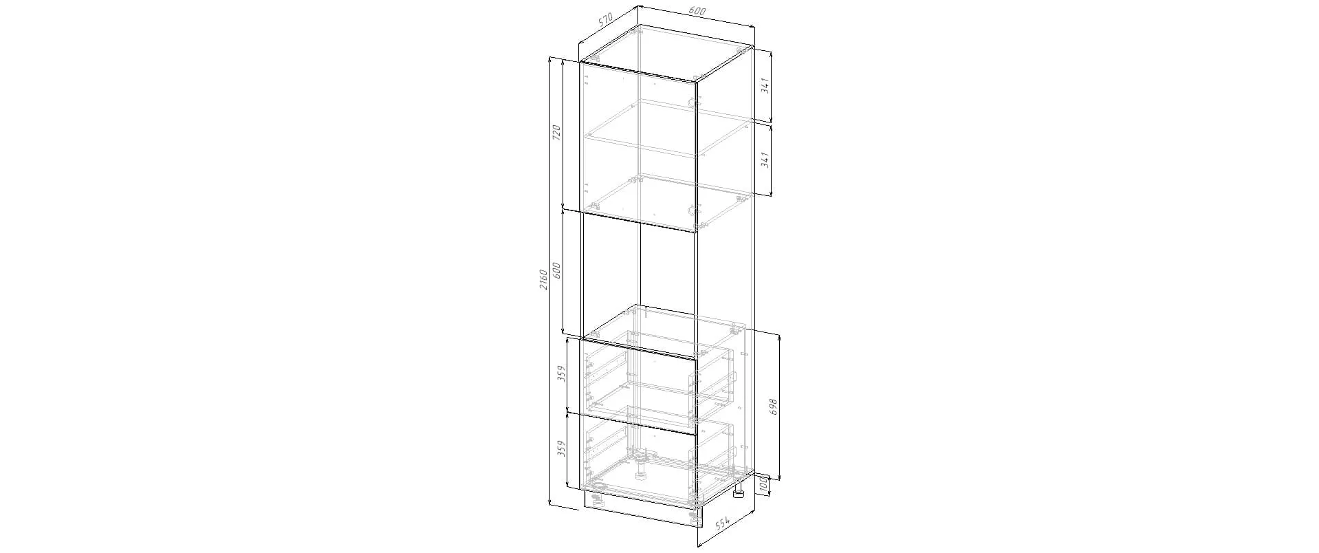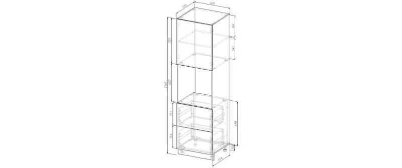 П72Я2 Пенал-колонна 600х570х2160 Под духовой шкаф + 2 больших ящика