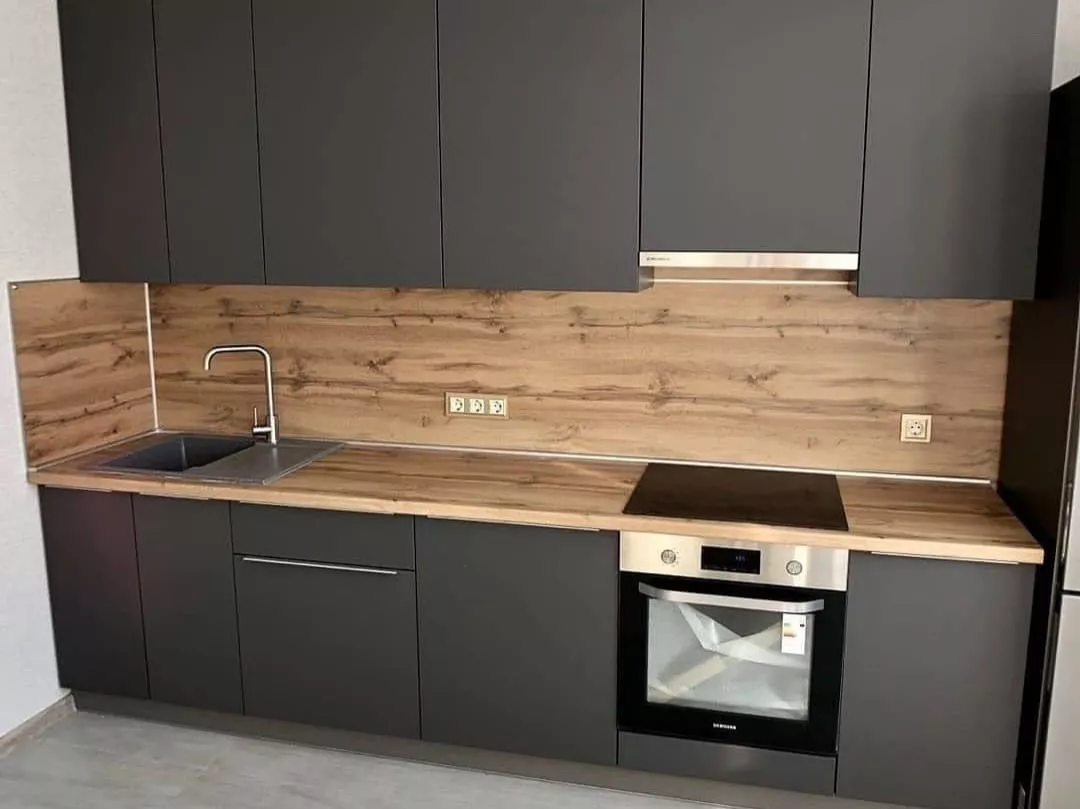 Кухонный гарнитур в прямом исполнении, выполненный из высококачественного ЛДСП.