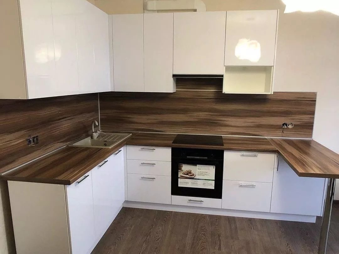 Кухонный гарнитур Угловой, ЛДСП, жемчуг, дуб