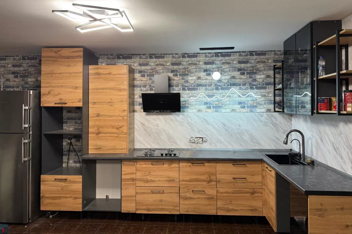 • Кухонный гарнитур Угловой, ЛДСП, дуб крафт, детройт